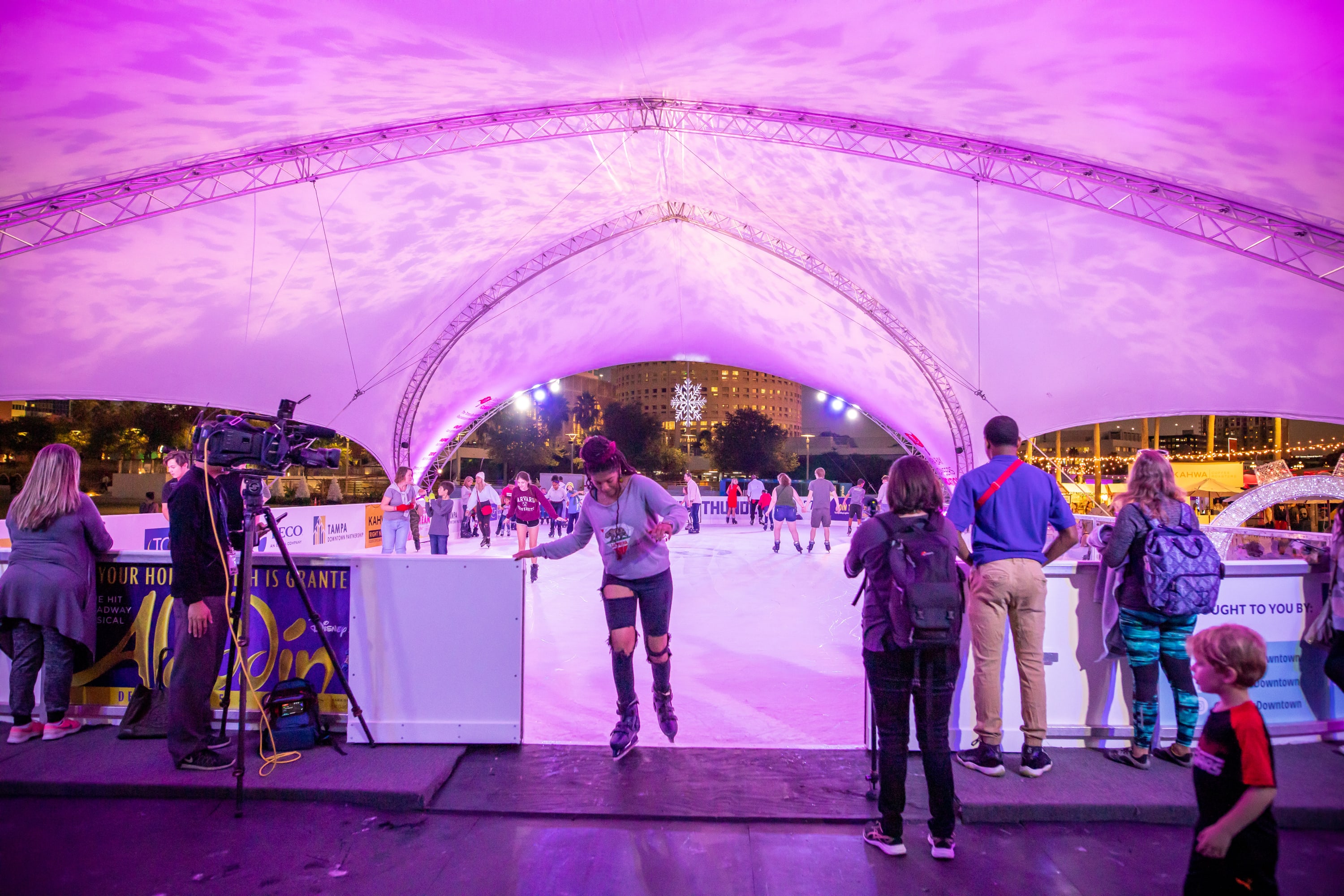 Showcase Your Business at Winter Village Tampa's 10th Anniversary with NEW Advertisement and Sponsorship Opportunities! Winter Village at Curtis Hixon Park welcomes over 250,000 attendees and more than 27,000 skaters each season, making it one of Tampa’s most beloved holiday traditions. With nearly 1.4 million social media interactions and an earned media reach of over 900 million, the Village offers unmatched visibility for your brand. Purchasing an exterior dasher board along our open-air ice rink is a great way to put your business in front of thousands of daily visitors, skaters, and spectators.However, if you’re looking for even greater exposure, we also offer footprint-wide sponsorship opportunities that include expanded recognition, large on-ice Dashers and activation benefits. You can explore these opportunities in the linked PDF - Winter Village Full Sponsorship OpportunitiesDasher Opportunities are available on a first-come, first-serve basis.